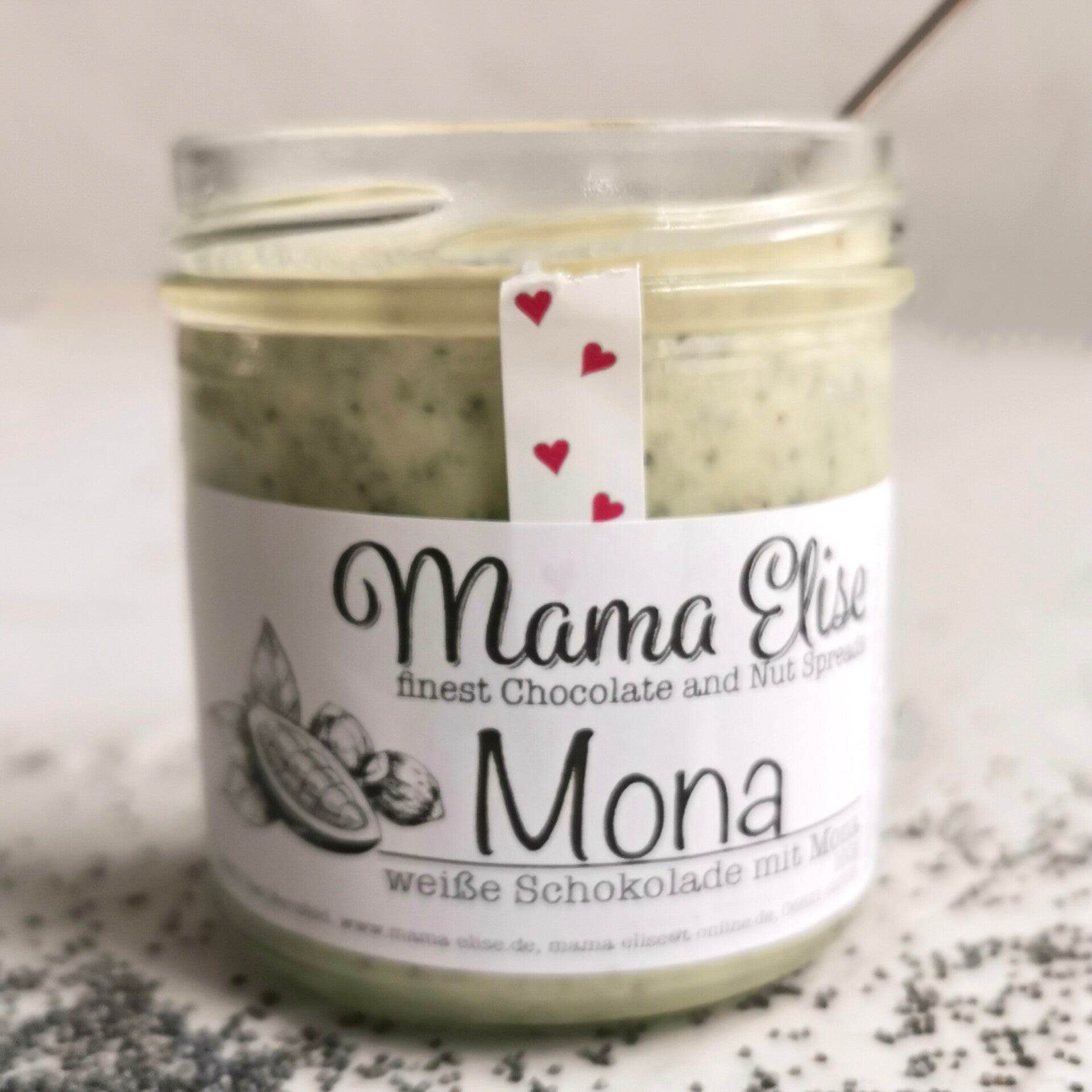 Zutaten: weiße Schokolade, Pflanzenöl, Kakao, Mohn, Sonnenblumenlecithin, Glucose